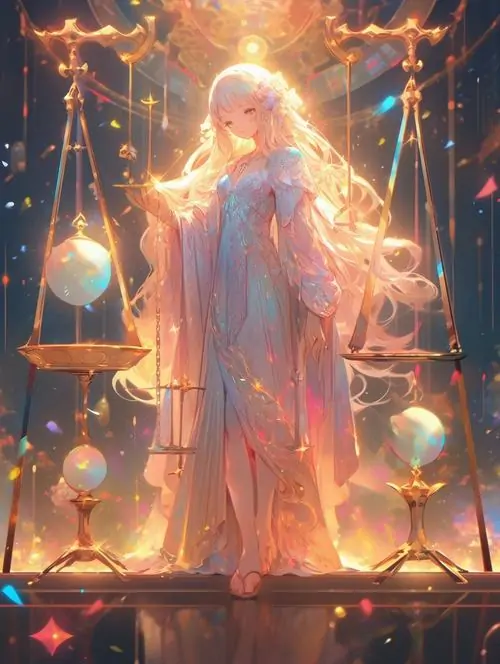 80 Hình Ảnh Cung Thiên Bình Nữ Anime Chibi dễ thương với váy xòe và biểu tượng cái cân nhỏ